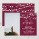 Célébrez votre jour spécial avec cette invitation d'anniversaire de mariage personnalisée avec photo. Ce design présente une belle typographie "chut... c'est une surprise" et des guirlandes lumineuses sur un fond rouge Bourgogne. Vous pouvez personnaliser le texte pour n'importe quelle année. Remplacez la photo d'exemple par votre propre photo. Les fournitures de fête assorties sont disponibles dans ma boutique BaraBomDesign.