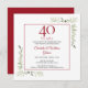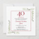 Avec une verdure délicate de jardin campagnard aquarellisé, cette invitation d'anniversaire chic peut être personnalisée avec vos informations de célébration d'anniversaire de 40 ans spéciales, avec un fond rouge rubis au verso. Conçu par Thisisnotme©