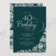 Simple et élégante invitation de fête de 40e anniversaire en vert émeraude et argent. Design classique avec rose, faux feuille argent et police de script de typographie. Carte invitation tendance parfaite pour une célébration anniversaire élégante. Personnalisez avec vos propres détails. Peut être customisé à n'importe quel âge. Invitations Zazzle imprimées ou téléchargement instantané modèle imprimable numérique.