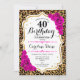 Invitation 40e anniversaire - Empreinte de léopard d'or rose