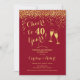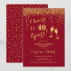 Invitation d'anniversaire de mariage 40 ans rouge rubis. Félicitations pour 40 ans ! Design élégant en rouge et or. Caractéristiques verres à champagne, police de caractères script et confettis. Parfait pour une célébration élégante de 40 ans de mariage. Cartes d'invitation Zazzle imprimées ou modèle numérique à télécharger instantanément. Peut être personnalisé pour afficher n'importe quelle année ! Personnalisez avec vos propres détails.