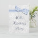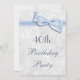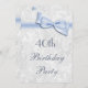 Les élégantes invitations de la fête du 40e anniversaire des femmes. Invitations de la fête d'anniversaire de la femme de quarantième / quarante ans. Beau motif damassé blanc arrière - plan avec un joli et élégant arc bleu et ruban image. Ces invitations glamour, chic et classe sont magnifiquement sophistiqués et décorés / imprimés de part et d'autre. VEUILLEZ NOTER : Tous les invitations de Zazzle ont des images imprimées à plat. Images à ruban et à bow achetées à partir de conceptions numériques-par-elena. Si vous avez besoin d'aide pour customiser votre invitation, veuillez me contacter par l'intermédiaire de mon magasin et je serai heureux de vous aider.