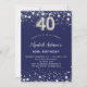 Une invitation moderne, élégante et glamour pour une fête de 40e anniversaire. Un arrière - plan bleu marine, décoré de faux étoiles argentées. Personnalisez et ajoutez votre nom et les détails de votre fête. Le numéro 40 est écrit avec une police de style ballon.