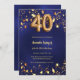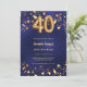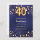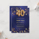 Une invitation design et moderne pour un 40ème anniversaire. Un arrière - plan bleu marine, décoré d'étoiles dorées. La couleur bleue est inégale. Personnalisez et ajoutez votre nom et les détails de votre fête.