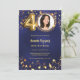 Une invitation photo moderne et design pour une fête de 40e anniversaire. Un arrière - plan bleu marine, décoré d'étoiles dorées. La couleur bleue est inégale. Personnalisez et ajoutez vos photos et détails de fête.