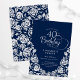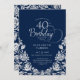 Invitation de 40e anniversaire en argent de la Marine. Design classique avec rose, faux feuille argent et police de script de typographie. Carte invitation tendance parfaite pour une célébration anniversaire élégante. Personnalisez avec vos propres détails. Peut être customisé à n'importe quel âge. Invitations Zazzle imprimées ou téléchargement instantané modèle imprimable numérique.