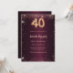 Pour un 40ème anniversaire élégant. Une couleur arrière - plan dégradé bordeaux. Décoré de faux éclats d'or rose. Personnalisez et ajoutez un nom et des détails du parti. Le nom est écrit avec un script de style manuscrit