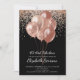 Ballons d'or rose Et confetti invitation de fête de 40e anniversaire. Design en noir et or audacieux avec une police en écriture blanche moderne. Personnaliser pour n'importe quel âge. 30, 40, 50, 60, 70, 80, et plus.