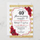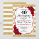Invitation 40e Anniversaire - Roses rouges blanches or