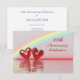 Invitation pour le 40e anniversaire de mariage rubis avec un arc-en-ciel et deux cœurs rubis brillants flottant sur l'eau. Personnalisez le texte exemple au verso avec vos propres informations pour votre événement.