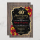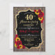 Invitation 40e Anniversaire - Tournesols Roses Rouges Bois