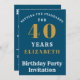 Invitation 40th Birthday Standards Blue Gold Ajouter votre no