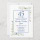 Caractérisé par une délicate verdure de jardin campagnard à l'aquarelle, cette invitation d'anniversaire chic peut être personnalisée avec vos informations de célébration de 45e ou 65e anniversaire de mariage, avec un fond bleu saphir au verso. Conçu par Thisisnotme©