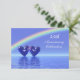 Invitation 45e anniversaire de mariage argent avec un arc-en-ciel et deux cœurs de saphir bleu flottant sur l'eau. Personnalisez le texte d'exemple au dos avec vos propres informations pour votre événement.