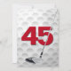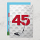 Gros plan de motif de balle de golf blanc avec un club de golf pour 45ème anniversaire. L'âge est modifiable. Tout le texte sur le côté arrière peut être modifié. La couleur du ciel bleu peut être changée.