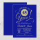 Invitation à une fête du 45e anniversaire de mariage en bleu saphir avec or pailleté faux. À 40 ans de là ! Parfait pour une célébration élégante.