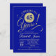 Invitation à une fête du 45e anniversaire en bleu saphir avec or pailleté faux. À 40 ans de là ! Parfait pour une célébration élégante.