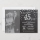 45e anniversaire de mariage avec photo personnalisée. Invitation tableau noir et argent. Quarante-cinquième anniversaire de mariage. Fond diamant pailleté tableau noir et argent. Confettis argentés. Anniversaire adulte. Fête d'anniversaire pour homme ou femme. Pour une personnalisation plus poussée, veuillez cliquer sur le bouton "Personnaliser" et utiliser notre outil de conception pour modifier ce modèle.