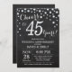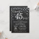 45e anniversaire de mariage Invitation tableau noir et argent. Quarante-cinq ans d'anniversaire de mariage. Fond de diamant pailleté noir et argent. Confettis argentés. Anniversaire adulte. Fête d'anniversaire pour homme ou femme. Pour une personnalisation supplémentaire, veuillez cliquer sur le bouton "Personnaliser" et utiliser notre outil de conception pour modifier ce modèle.
