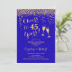 Invitation du 45e anniversaire du Royal blue mariage. Salutations à 45 ans ! Design élégant en bleu saphir et or. Il comprend des verres à champagne, des caractères de script et des confettis. Parfait pour une célébration élégante de 45 ans de mariage. Imprimé Zazzle invitations ou télécharger instantanément le modèle numérique. Peut être customisé à montrer n'importe quelle année! Personnalisez avec vos propres détails.