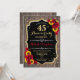 Design élégant rustique avec motif en bois brun foncé, doré pailleté faux, tournesols et roses rouges rubis.