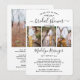 Que vos amis et votre famille pratiquent la distanciation sociale ou qu'ils vivent tout juste loin, connectez-vous avec eux en ligne avec une élégante douche nuptiale virtuelle moderne. Cette élégante invitation permet de partager 4 photos de fiançailles ainsi que les informations nécessaires pour se connecter à distance par courrier et par vidéoconférence Internet. Tout le texte est simple à personnaliser. (CONSEIL EN MATIÈRE DE PLACEMENT D'IMAGE : Une façon simple de centrer une photo exactement comment vous voulez est de la rogner avant de la télécharger sur le site Zazzle.) Design propose quatre images de votre choix, une calligraphie de script de style manuscrit chic et une typographie minimaliste moderne. Ce modèle est facile à customiser à une douche, un baby shower ou un autre événement pour couple virtuel. Le design tendance est assorti à un thème mariage simple et élégant. L'espace supplémentaire fourni pour un message personnel est parfait s'il s'agit d'une partie reprogrammée en raison d'une annulation ou d'un report. Félicitations à la mariée !