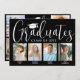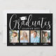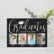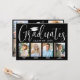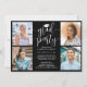 C'est une fête de fin d'études ! Annoncez la réussite de quatre diplômés et de la famille et des amis invitations à célébrer avec des invitations personnalisées de la fête de remise de diplômes de groupe élégant. Toutes les images et le libellé sont simples à personnaliser, et les couleurs peuvent être customisées à l'aide de l'outil de design Zazzle. (CONSEIL EN MATIÈRE DE PLACEMENT D'IMAGE : Une façon simple de positionner une photo exactement comment vous voulez est de la rogner avant de la télécharger sur le site Zazzle.) Ce modèle est une carte de faire-part sur le devant avec l'invitation de la grande fête sur le dos. Le design moderne en noir et blanc présente une calligraphie manuscrite avec un casquette en carton de mortier, une typographie classique élégante, et huit photos de votre choix, telles que des images de haut niveau ou des images de la cérémonie de début. Cette carte d'invitation à la remise des diplômes est une façon élégante d'annoncer une fête spéciale pour les élèves de plusieurs niveaux, comme les frères et soeurs, les meilleurs amis, les cousins, les coéquipiers, etc. Félicitations aux diplômés !
