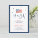 Fêtez l'anniversaire de l'Amérique avec une touche sophistiquée en invitant vos amis et votre famille à votre dîner 4 juillet en utilisant cette invitation élégante et personnalisable. Le design est agrémenté d'un magnifique drapeau américain aquarelle peint à la main, ajoutant une touche artistique au thème classique. Entouré d'étoiles délicates, le script "4 juillet" crée un point focal charmant. La frontière bleu marine encadre l'invitation à merveille, lui donnant un aspect raffiné. Ce qui rend cette invitation vraiment spéciale est sa polyvalence et ses options de personnalisation. Vous pouvez customiser tous les détails de l'événement, y compris la date, l'heure, l'emplacement et les informations RSVP pour vous assurer que vos invités ont tout ce dont ils ont besoin pour participer à la célébration. Cette invitation est parfaite pour un rassemblement patriotique, alliant élégance et esprit festif, faisant de votre dîner 4 juillet un événement inoubliable.