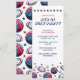 Stars and Stripes a inspiré l'invitation à une 4 juillet soirée barbecue avec des illustrations de balles de foot, de balles de baseball et de balles de basket.