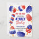 Jolie invitation d'anniversaire en style. Thème : 4 juillet fête de l'Indépendance Anniversaire. Occasion : anniversaire. Style : Mignonne, Gaie, Amusante. Couleurs : Rouge, Bleu, Blanc, Or. Graphiques : drapeau américain, étoiles, pop.