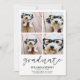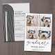 Le devant comprend 4 photos dans un collage moderne avec une police de script tendance pour "grade". L'arrière comprend un design moderne du milieu du siècle avec un espace pour l'information de la fête de remise des diplômes. La couleur blanche arrière - plan peut être changée dans l'espace design avancé. Ce design minimal est léger et ne comprend que des lettres noires et blanches. Cela peut être utilisé pour n'importe quel diplômé - lycée, collège, lycée, école de médecine ou même école de commerce.