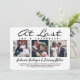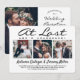Invitez famille et amis à une célébration de mariage simplement élégante avec ce faire-part de mariage élégant et moderne en forme de collage photo "Enfin célébrons". Toute la mise en forme est simple à personnaliser pour n'importe quel type d'événement, y compris une réception après une fugue, une cérémonie de renouvellement de vœux, un second mariage, une réception pour le 1er anniversaire, un cocktail ou un dîner. Personnalisez-le pour inclure les détails de votre choix, tels que la date du mariage, le code vestimentaire, la réponse, le site web, etc. (ASTUCE DE PLACEMENT D'IMAGE : Un moyen facile de centrer une photo exactement comme vous le souhaitez est de la rogner avant de la télécharger sur le site Zazzle). Le design moderne minimaliste noir et blanc présente quatre photos du couple nouvellement marié, une calligraphie à l'écriture manuscrite tendance et une typographie élégante de style machine à écrire. Que vous ayez fait une fugue, organisé une minimonie ou un micro-mariage, ou que votre célébration ait dû être reportée