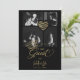 4 Photos Heart Fake Golden Black Trendy Collage Wedding Invitation Card with Envelope.