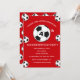 fête du 4ème anniversaire pour un fan de football, des sports, des enfants, des garçons, pour lui. Rouge et blanc, moderne, élégante invitation à la fête d'anniversaire. Veuillez le personnaliser avec vos détails.