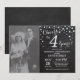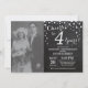 4e Anniversaire de Mariage avec photo personnalisée. Invitation Tableau Noir et Argent. Quatrième Anniversaire de Mariage. Fond Diamant Pailleté Noir et Argent. Confettis Argentés. Anniversaire Adulte. Fête d'Anniversaire pour Femme ou Homme. Pour une personnalisation plus poussée, veuillez cliquer sur le bouton "Personnaliser" et utiliser notre outil de conception pour modifier ce modèle.