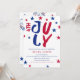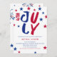 Celebrate Independence Day with your family this year with our Independence Day party invitation design! Featuring a patriotic design with red and blue stars and a white background, this invitation is perfect for sending to family or friends to celebrate America's free birthday.