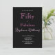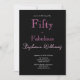 Fifty and Fabulous minimal, modern 50th birthday invitation has a hollow pink font on a black background that you can personalize and send out for your fiftieth birthday party celebration. The words "Fifty and Fabulous" are set using popular typography. The text colors can be changed using the edit menu.