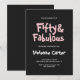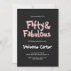 Fifty and Fabulous pink and black modern 50th birthday invitation that you can personalize and send out for your fiftieth birthday party celebration. The words "Fifty and Fabulous" are set using popular font typography. The text colors can be changed using the edit menu.