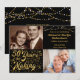 Invitez vos invités avec cette invitation d'anniversaire de mariage de 50 ans en noir et or avec une typographie moderne indiquant "50 ans de fabrication" et vous permet d'inclure leur année de mariage dans le design et d'ajouter leurs photos THEN et NOW.