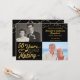 Invitez vos invités avec cette invitation d'anniversaire de mariage de 50 ans en noir et or avec une typographie moderne mais rétro indiquant "50 ans de fabrication" et vous permet d'inclure leur année de mariage comme "établi en 19XX" intégré dans le design 50 ans et ajoutant leurs photos ALORS et MAINTENANT. Le verso comporte un espace pour des informations supplémentaires si nécessaire (supprimez le texte exemple pour le laisser vide.