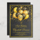 Ballons noirs et or et confetti invitation de la fête du 50e anniversaire. Design en noir et or audacieux avec une police en écriture blanche moderne. Personnaliser pour tout âge. 30, 40, 60, 70, 80, et plus. Voir la collection complète à l'adresse suivante : https://www.zazzle.com/collections/gold_and_black_balloons_confetti_birthday_party-119172749816882801