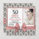 Rose or arc gris blanc damassé | 50e anniversaire Invitations. Cinquante et fabuleux ! Une belle moderne élégante rose rose or arc gris blanc vintage damask 50th Birthday Party Invitations vous pouvez personnaliser et envoyer votre fête de cinquantième anniversaire célébration. Au centre, joli arc rose avec diamant brillant. Remplacez l'exemple de photo par le vôtre. Les mots "50 and Fabulous" sont utilisés par la typhographie populaire. Vous pouvez personnaliser les polices de script et les couleurs de police dans la conception. Veuillez noter que ce design est un effet photo imprimé sans véritable arc ni diamant. # 3302e