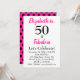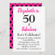 Des amis Invitations pour célébrer le Fabuleux cinquantième anniversaire de votre être aimé avec ce design audacieux et élégant de 50ème anniversaire qui est facile à personnaliser juste pour cette fille d'anniversaire spécial. 50 et Fabuleux en gras texte rose et noir avec un amusant, pois noirs sur un arrière - plan rose.