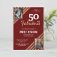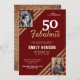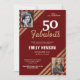 50 et Fabulous Gold Parties scintillant 2 Photo 50th Birthday Surprise Party Invitation. Invitation d'anniversaire de parties scintillant moderne et élégante rouge foncé et faux or pour elle. Ajoutez vos photos - vous pouvez utiliser une vieille photo et une nouvelle photo. Vous pouvez modifier tout le texte.