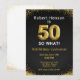Celebrate a milestone 50th birthday with this stylish and fun invitation! Featuring a bold '50 SO WHAT!' statement in gold foil numbers against a sophisticated black background, accented with sparkling gold confetti. This customizable design is perfect for those who embrace their age with humor and flair. Invite friends and family to an unforgettable 50th birthday celebration with an invitation that truly stands out. Easy to personalize with all your party details.