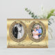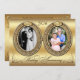 Cette élégante invitation pour une fête d'anniversaire de mariage de 50 ans comporte une paire de cadres photo ovale ornés de marron et d'or avec des perles et des volutes et des cœurs complexes. Il y a des plaques dorées faussement gravées qui disent "Alors" et "Maintenant" qui peuvent être enlevées. Il y a deux volutes de type filigrane d'angle assorties sur le devant et quatre sur le dos, ainsi que des champs de modèle pour que vous puissiez ajouter votre propre texte. Tout le texte est personnalisable, ainsi que les choix de papier. AUSSI, si vous changez de police ou de taille de police, votre texte risque de ne plus convenir correctement. Zazzle ne modifiera rien pour les fautes de frappe, l'alignement ou autre chose, et je ne verrai pas votre invitation. Tout sera imprimé tel qu'il apparaît sur votre moniteur. Si vous avez besoin d'aide pour l'invitation, veuillez me contacter AVANT de la commander. Cette invitation est conçue pour s'adapter à la carte de taille 5x7. Si vous changez pour une autre taille, le design ne conviendra plus