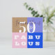 C'est un design stylisé, personnalisé, 50 ans, 50 ans et fabuleux design typographique. Il dispose d'un arrière - plan de damier contemporain en tendance beige, violet, bleu et rose avec police de script et typographie rétro blanche. Parfait pour une soirée 50ème anniversaire chic et inoubliable. Ce design est entièrement personnalisable, pour personnaliser, il suffit d'ajouter votre nom et informations de fête, date et heure, emplacement et informations RSVP, en utilisant ce bouton personnalisé. Consultez l'outil d'édition de conception si vous souhaitez modifier les couleurs, le motif de damier ou la police. Si vous avez besoin d'aide pour la personnalisation, la mise en correspondance de produits ou pour un design personnalisé, contactez-moi par zazzle conversation ou email : ursuladawnmoon@gmail.com