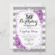 Invitation 50th Birthday Design élégant de lavande blanc blanc argenté avec fausse parties scintillant. Bandes d'argent et de blanc avec roses violets. Parfait pour une soirée de cinquantième.