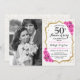 Invitation 50e Anniversaire avec Photo - Or Blanc Rose