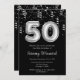 Cette invitation d'anniversaire élégante et glamour porte le numéro 50 en argent avec confetti en argent. Le texte combine écriture manuscrite et polices sans serif modernes pour un look élégant et sophistiqué.